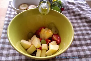 Recette facile à réaliser. En entrée ou en accompagnement. Voici, la salade aux fruits et aux légumes. Parfait avec la saison des fruits et des légumes.